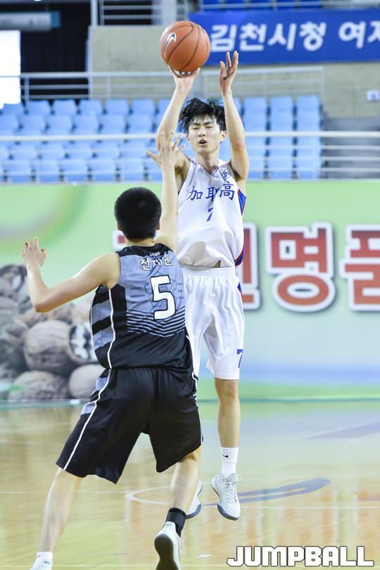 [점프볼=김천/홍기웅 기자] 8일 김천실내체육관에서 열린 '2018 연맹회장기 전국남녀중고농구 김천대회' 남고부 김해가야고와 대전고 경기에서 대전고가 77-57로 제압해 승리를 거뒀다. 연맹회장기 김해가야고-대전고 경기화보.