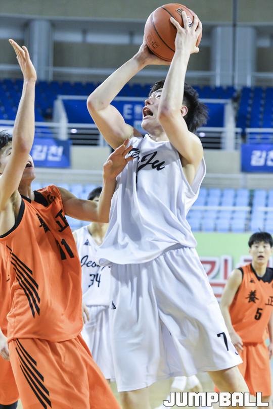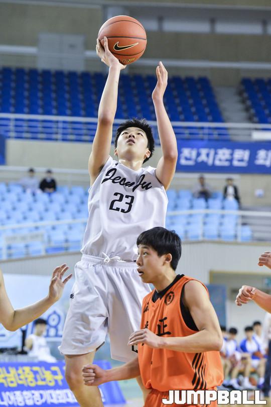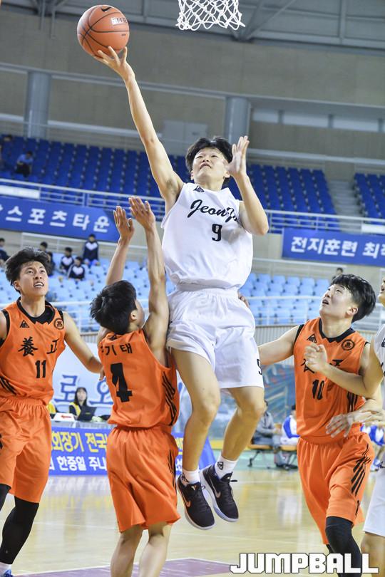 [점프볼=김천/홍기웅 기자] 8일 김천실내체육관에서 열린 '2018 연맹회장기 전국남녀중고농구 김천대회' 남고부 전주고와 양정고고의 경기에서 전주고가 97-89로 승리를 거뒀다. 연맹회장기 전주고-양정고 경기화보.