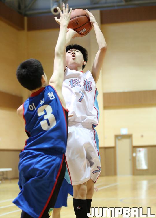 8일 김천국민체육센터에서 열린 2018 연맹회장기 전국남녀중고농구대회 남중부 예선 첫 날 경기, 송도중이 이민철과 이건영이 나란히 32점을 올리는 활약 속에 91-68로 침산중에 대승을 거뒀다.