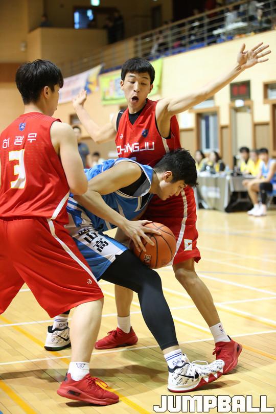8일 김천국민체육센터에서 열린 2018 연맹회장기 전국남녀중고농구 대회 남고부 예선전 경기, 용산고가 압도적인 화력을 자랑하며 107-78로 충주고에 대승을 거뒀다.