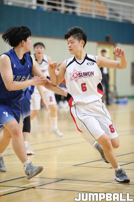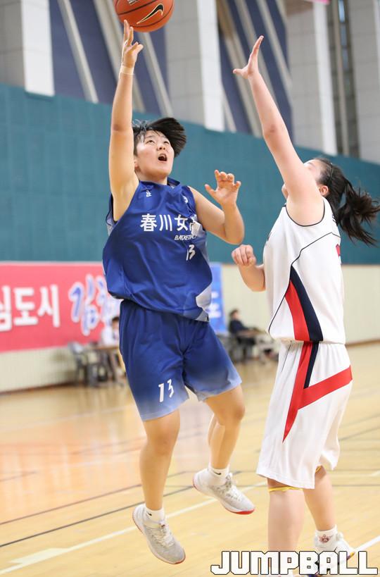 9일 김천실내체육관 보조경기장에서 열린 2018 연맹회장기 전국남녀중고농구대회 여고부 에선전 경기, 춘천여고가 압도적인 전력으로 경기를 주도한 끝에 74-28로 수원여고에 대승을 거뒀다.