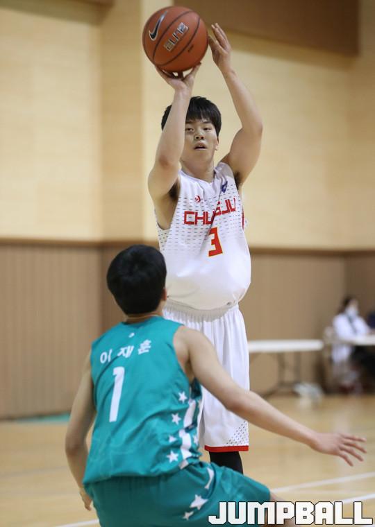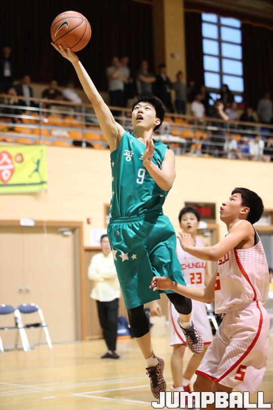 9일 김천국민체육센터에서 열린 2018 연맹회장기 전국남녀중고농구대회 남고부 예선전 경기, 광주고가 접전 끝에 90-80으로 충주고의 추격을 따돌리고 승리를 따냈다.