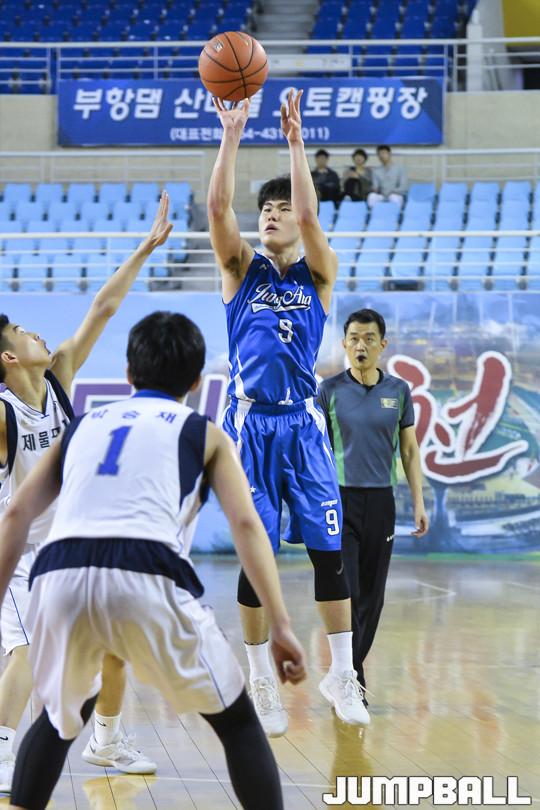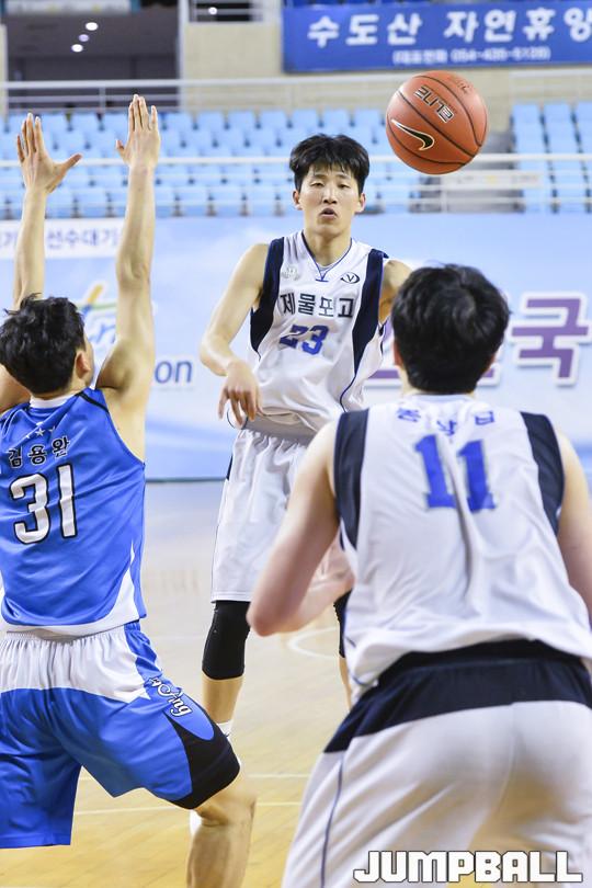 [점프볼=김천/홍기웅 기자] 12일 김천실내체육관에서 열린 '2018 연맹회장기 전국남녀중고농구대회' 남고부 결선 1일차 제물포고와 부산중앙고의 경기에서 제물포고가 85-81로 승리를 거뒀다. 연맹회장기 남고부 결선 제물포고-부산중앙고 경기화보.