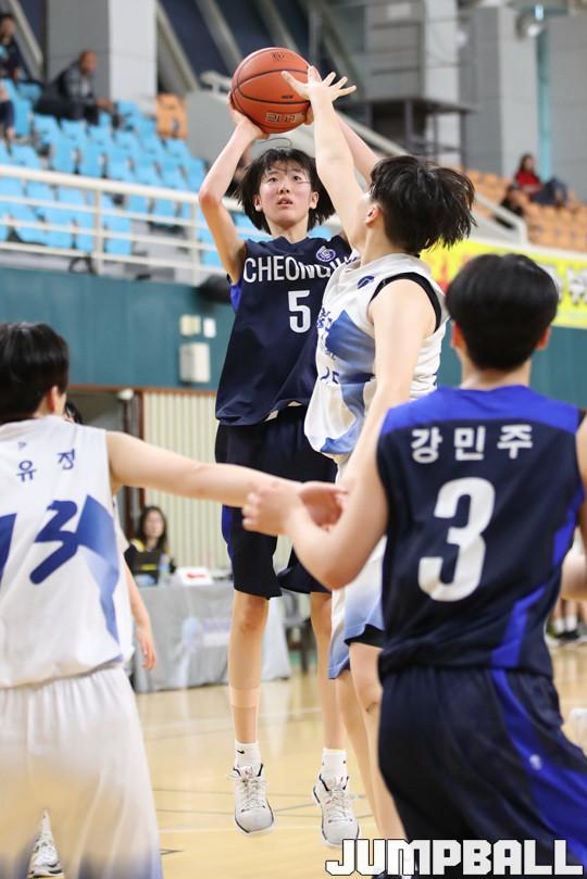 춘천 봉의중이 13일 경북 김천실내체육관 보조경기장에서 열린 2018 연맹회장기 전국남녀중고농구대회 여중부 준결승전 첫 번째 경기에서 88-64로 청주여중을 꺾고 10년만에 결승전에 올랐다.