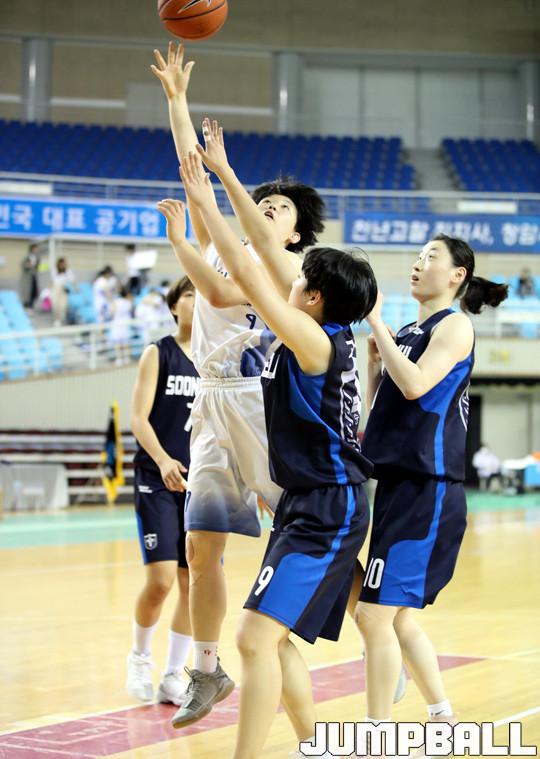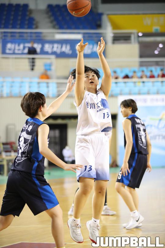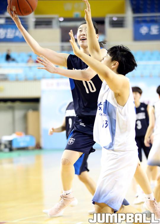 박지현을 앞세운 숭의여고가 14일 경북 김천실내체육관에서 열린 2018 연맹회장기 전국남녀중고농구대회 여고부 결승전에서 압도적인 공격력을 자랑하며 80-51로 춘천여고를 꺾고 정상에 올랐다.