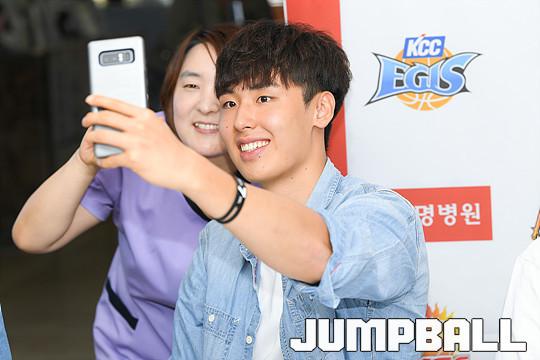 KBL과 희명병원이 함께 진행하는 본 행사는 2017-2018시즌 ‘사랑의 3점슛 캠페인’을 통해 적립된 기금 전달식이 진행되며, 전달식 이후에는 김시래(LG), 김태술(삼성), 박찬희(전자랜드), 송교창(KCC), 오세근(KGC인삼공사), 최준용(SK)이 참가하여 농구팬들과의 뜻깊은 만남을 가졌다. KCC 송교창이 팬과 사진을 촬영하고 있다.
