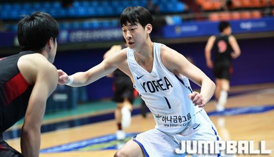 [점프볼=인천/문복주 기자] 한국남자대학선발팀은 20일 인천도원체육관에서 열린 제41회 이상백배 한일대학농구경기대회 3차전에서 한국대표 이재우가 강력한 맨투맨 수비를 펼치고 있다.