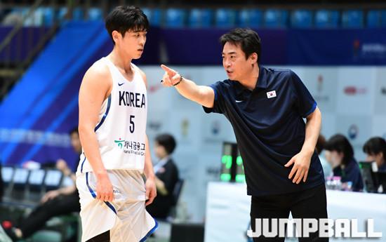[점프볼=인천/문복주 기자] 한국남자대학선발팀은 20일 인천도원체육관에서 열린 제41회 이상백배 한일대학농구경기대회 3차전에서 한국대표 김상준 감독이 변준형 선수에게 빠른 공격패턴을 지시하고 있다.