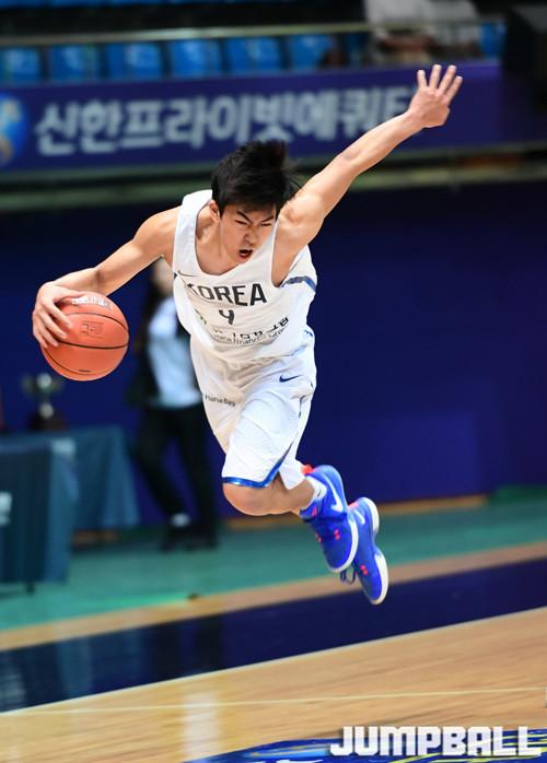 [점프볼=인천/문복주 기자] 한국남자대학선발팀은 20일 인천도원체육관에서 열린 제41회 이상백배 한일대학농구경기대회 3차전에서 한국대표 박지원이 상대수비에 걸려서 허공을 날고 있다.