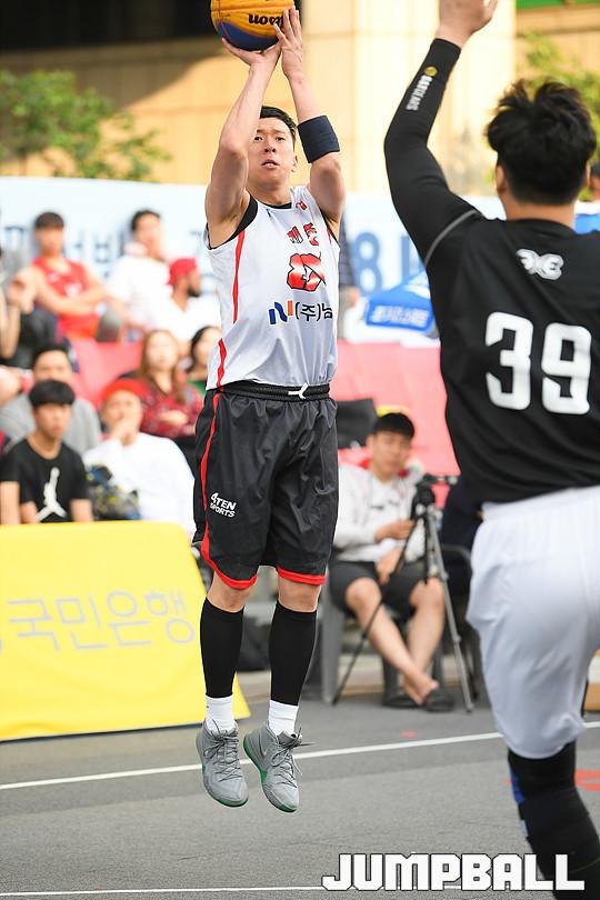 [점프볼=서울마당/유용우 기자] 26일 서울마당에서 열린 2018 KBA 3x3 코리아투어 서울대회 일반부 경기, 남일건설 장동영이 중거리슛을 던지고 있다.
