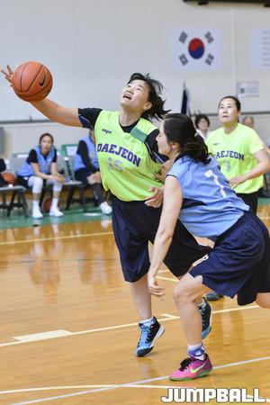[점프볼=도곡/홍기웅 기자] 27일 숙명여고 체육관에서 열린 제 38회 전국 어머니 농구대회 준결승 대전여상과 숭의여고 경기. 숭의여고가 드리블로 코트를 넘어서고 있다.