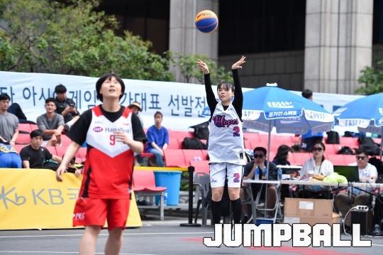 [점프볼=서울마당/윤희곤 기자] 27일 서울마당에서 열린 2018 KBA 3x3 코리아투어 서울대회 2일차 경기, WKBL 호프스 김진희가 2점슛을 시도하고 있다.