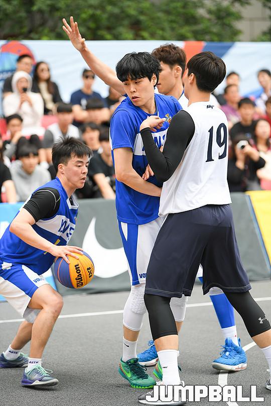 [점프볼=서울마당/유용우 기자] 27일 서울마당에서 열린 2018 KBA 3x3 코리아투어 서울대회 2일차 경기, 연세대 출신 김훈이 박스아웃을 펼치고 있다.