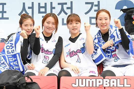 [점프볼=서울마당/유용우 기자] 27일 서울마당에서 열린 2018 KBA 3x3 코리아투어 서울대회 2일차 경기, WKBL 위시스의 이소정, 김진영, 박지은, 편예빈이 사진촬영에 포즈를 취하고 있다.
