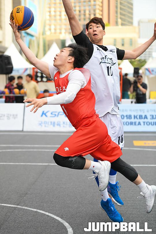 [점프볼=서울마당/유용우 기자] 27일 서울마당에서 열린 2018 KBA 3x3 코리아투어 서울대회 2일차 팀KBL 윈즈와 고려대의 경기, 고려대 김호범이 레이업을 올리고 있다.