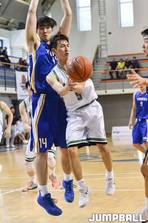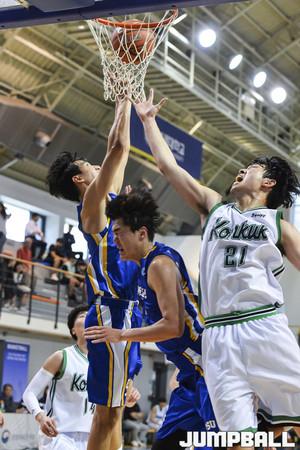 [점프볼=신촌/홍기웅 기자] 30일 연세대학교 체육관에서 열린 '2018 KUSF 대학농구 U-리그' 연세대와 건국대의 경기. 건국대 서현석이 리바운드를 잡아내고 있다.