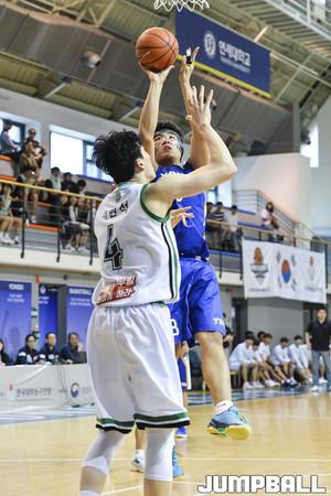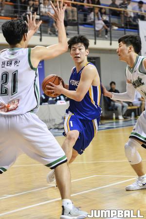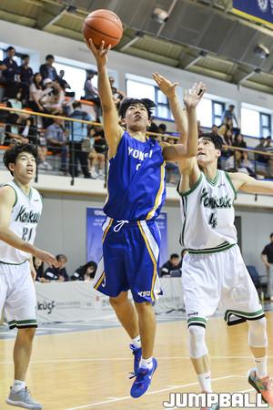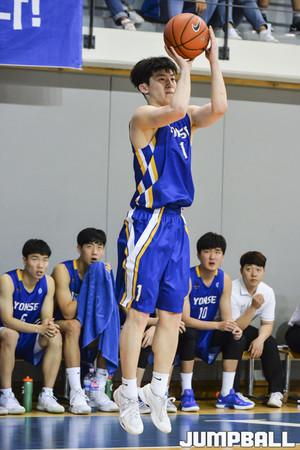 [점프볼=신촌/홍기웅 기자] 30일 연세대학교 체육관에서 열린 '2018 KUSF 대학농구 U-리그' 연세대와 건국대의 경기. 연세대 천재민이 3점 슛을 던져 득점하고 있다.