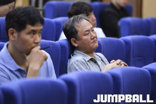 [점프볼=수원/홍기웅 기자] 대한민국농구협회가 2018 FIBA 지도자 강습회(FIBA Basketball Coaching Clinic 2018)를 개최했다. 오는 30일부터 6월 1일까지 3일간 경희대 국제캠퍼스 내 강의실과 체육관에서 2018 FIBA 지도자 강습회를 진행한다. 31일 강습회 2일차를 맞이해 경희대 국제캠퍼스 강의실에서 제리 크라우스 감독의 강의를 현대모비스 유재학 감독이 경청하고 있다.