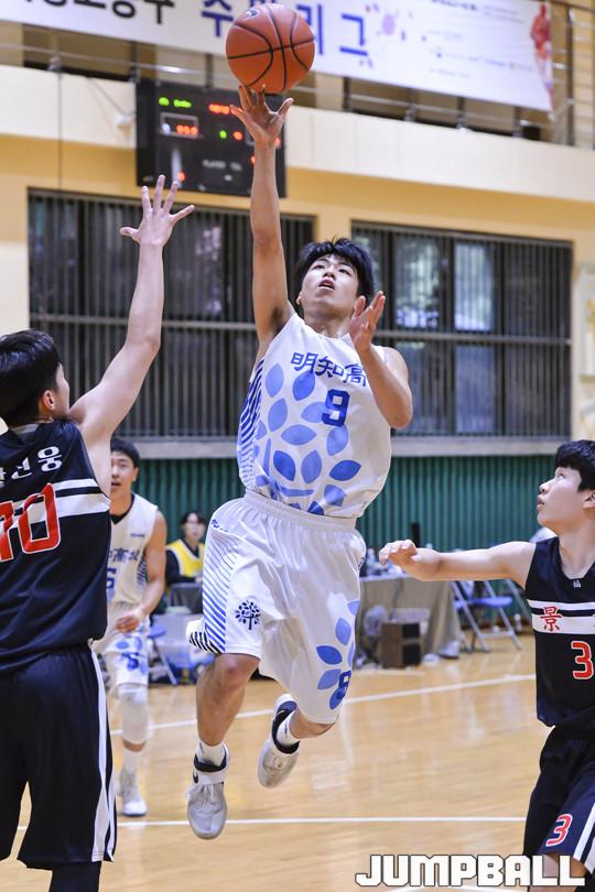 [점프볼=서울/홍기웅 기자] 6월 2일부터 8월 10일까지 전국각지에서 2018 한국중고농구 주말리그가 열린다. 2일 서울 경복고 체육관에서 열린 '2018 한국중고농구 주말리그' 명지고와 경복고의 경기. 명지고 박민철이 플루터 슛을 하고 있다.