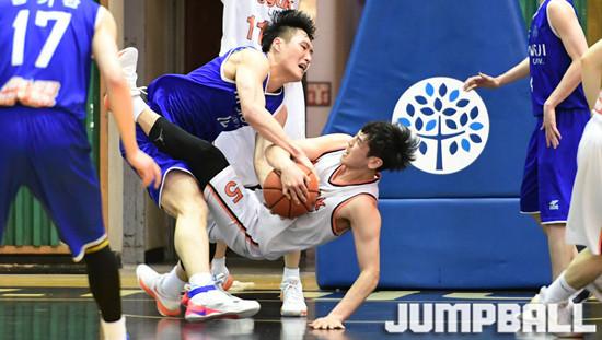 [점프볼=용인/문복주 기자] 8일 용인시 명지대학교 자연캠퍼스 체육관에서 열린 '2018 KUSF 대학농구 U-리그' 명지대와 동국대의 경기에서 동국대 변준형이 골밑에서 명지대 이동희와의 치열한 리바운드전을 펼치고 있다.