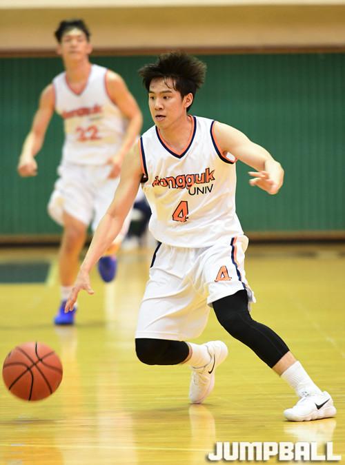 [점프볼=용인/문복주 기자] 8일 용인시 명지대학교 자연캠퍼스 체육관에서 열린 '2018 KUSF 대학농구 U-리그' 명지대와 동국대의 경기에서 동국대 정호상이 돌파구를 탐색하고 있다.