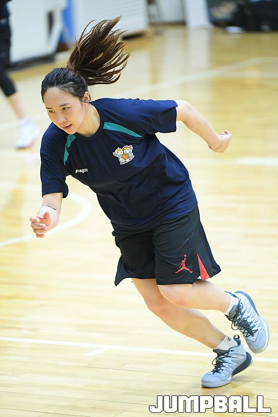 [점프볼=용인/유용우 기자] 08일 용인에 위치한 KEB하나은행 연수원 체육관에서 비시즌 훈련을 진행하는 KEB하나은행 농구단을 찾았다. 이환우 감독이 이끄는 KEB하나은행은 체력훈련과 코트훈련을 진행하며 시즌을 준비하고 있다. 비시즌 선수단에 변화가 있었다. KEB하나은행의 주전가드였던 염윤아가 KB스타즈로 이적하고, 박언주는 은퇴와 함께 전력분석원으로 변신했다. 그리고 외부FA로 고아라를 영입해 전력을 보강하였다. 지난 5월 일본 사가현에서의 12박 13일의 전지훈련을 마치고 돌아온 KEB하나은행은 체육관과 트랙을 오가며 다가오는 시즌을 대비한 몸만들기에 여념이 없었다. KEB하나은행 김단비가 풋워크 훈련을 진행하고 있다.