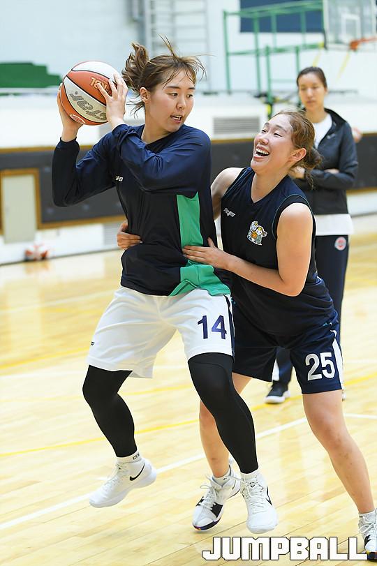 [점프볼=용인/유용우 기자] 08일 용인에 위치한 KEB하나은행 연수원 체육관에서 비시즌 훈련을 진행하는 KEB하나은행 농구단을 찾았다. 이환우 감독이 이끄는 KEB하나은행은 체력훈련과 코트훈련을 진행하며 시즌을 준비하고 있다. 비시즌 선수단에 변화가 있었다. KEB하나은행의 주전가드였던 염윤아가 KB스타즈로 이적하고, 박언주는 은퇴와 함께 전력분석원으로 변신했다. 그리고 외부FA로 고아라를 영입해 전력을 보강하였다. 지난 5월 일본 사가현에서의 12박 13일의 전지훈련을 마치고 돌아온 KEB하나은행은 체육관과 트랙을 오가며 다가오는 시즌을 대비한 몸만들기에 여념이 없었다. KEB하나은행 김민경이 코트훈련을 진행하고 있다.