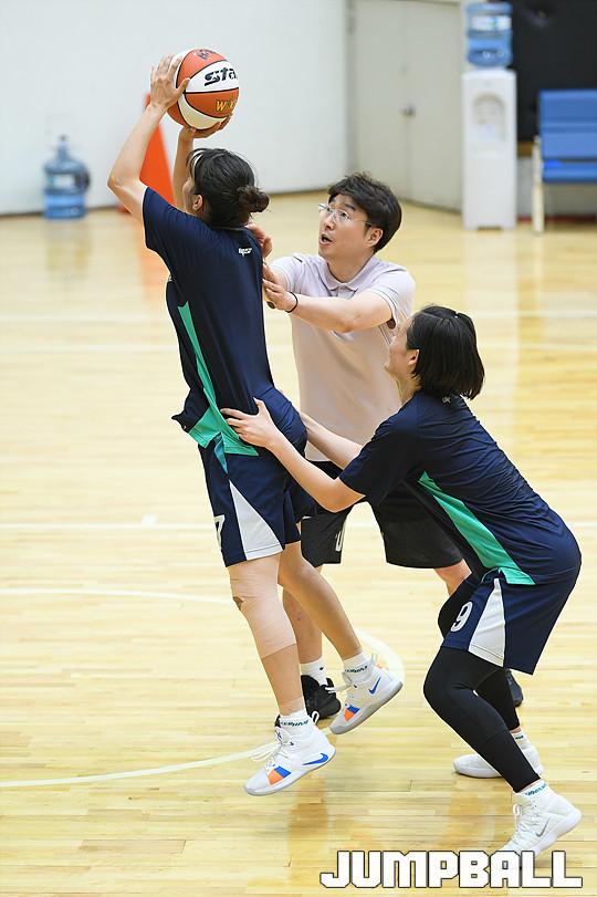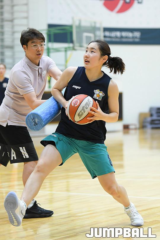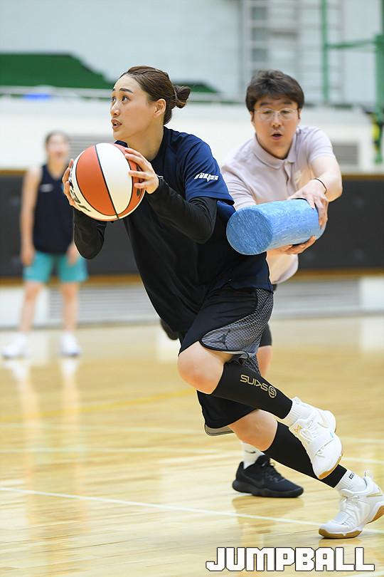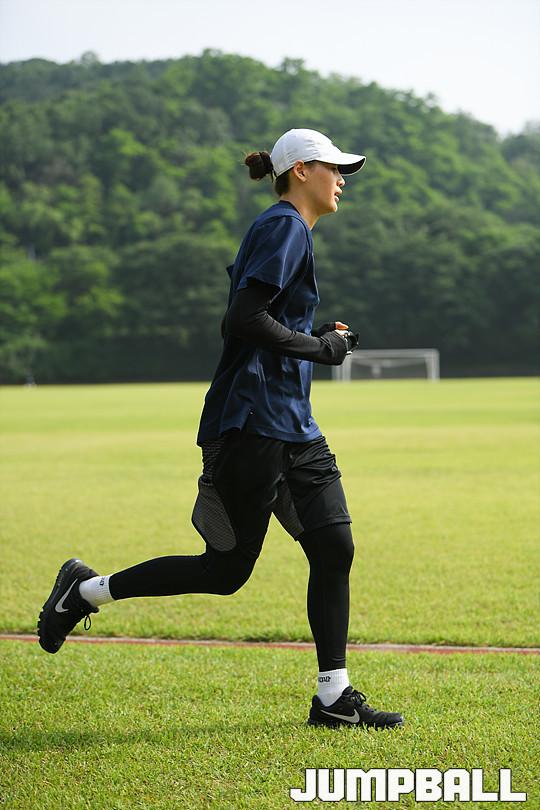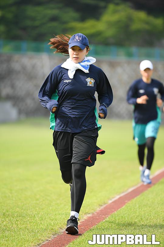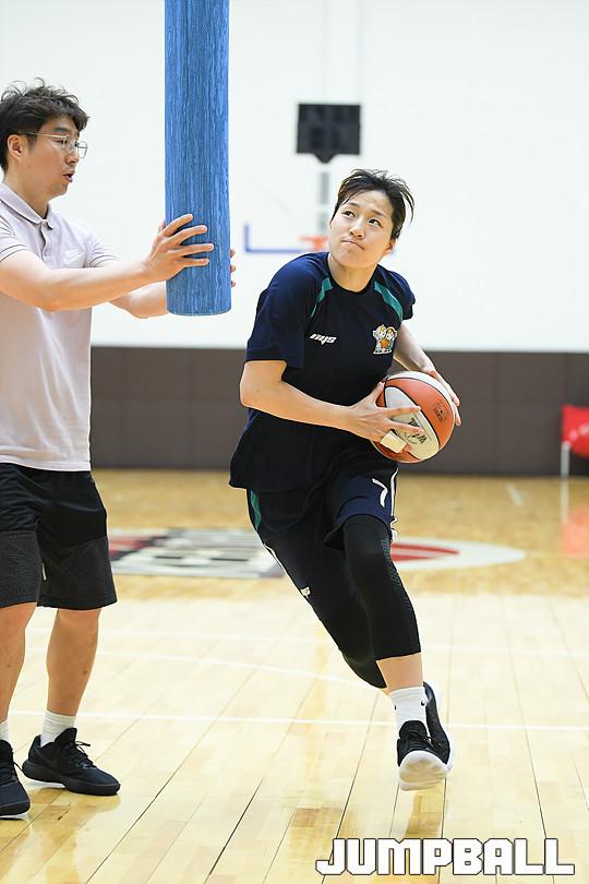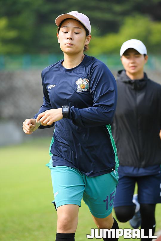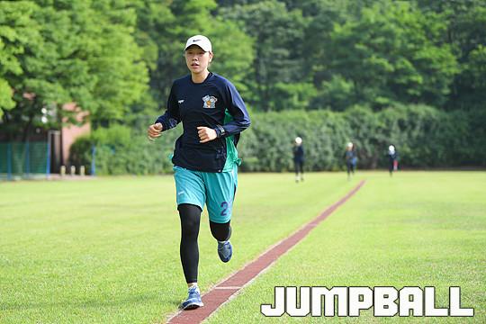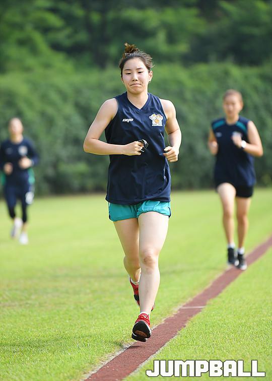 [점프볼=용인/유용우 기자] 08일 용인에 위치한 KEB하나은행 연수원 체육관에서 비시즌 훈련을 진행하는 KEB하나은행 농구단을 찾았다. 이환우 감독이 이끄는 KEB하나은행은 체력훈련과 코트훈련을 진행하며 시즌을 준비하고 있다. 비시즌 선수단에 변화가 있었다. KEB하나은행의 주전가드였던 염윤아가 KB스타즈로 이적하고, 박언주는 은퇴와 함께 전력분석원으로 변신했다. 그리고 외부FA로 고아라를 영입해 전력을 보강하였다. 지난 5월 일본 사가현에서의 12박 13일의 전지훈련을 마치고 돌아온 KEB하나은행은 체육관과 트랙을 오가며 다가오는 시즌을 대비한 몸만들기에 여념이 없었다. KEB하나은행 선수들이 비시즌 훈련을 진행하고 있다.