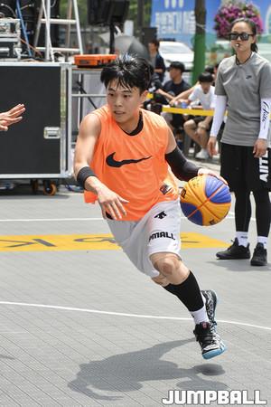 [점프볼=서울마당/홍기웅 기자] 9일 서울마당에서 열린 2018 KBA 3X3 코리아투어 최강전(FINAL) 오픈부 A코트 슬램덩크 - DSB의 경기. DSB가 스크린 플레이를 이용해 외곽 슛을 던지고 있다.