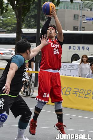 [점프볼=서울마당/홍기웅 기자] 9일 서울마당에서 열린 2018 KBA 3X3 코리아투어 최강전(FINAL) 오픈부 A코트 슬램덩크 - DSB의 경기. 슬램덩크가 한팔로 수비하면서 골밑 슛을 올리고 있다.