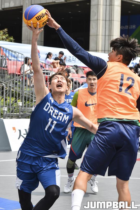 [점프볼=서울마당/홍기웅 기자] 9일 서울마당에서 열린 2018 KBA 3X3 코리아투어 최강전(FINAL) 오픈부 B코트 PHE - 드림팀 경기. PHE가 드림팀의 슛을 블록 슛하고 있다.