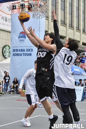 [점프볼=서울마당/홍기웅 기자] 9일 서울마당에서 열린 2018 KBA 3X3 코리아투어 최강전(FINAL) 오픈부 A코트 남일건설 - DSB 경기. DSB가 골밑에서 동료에게 패스를 건네고 있다.
