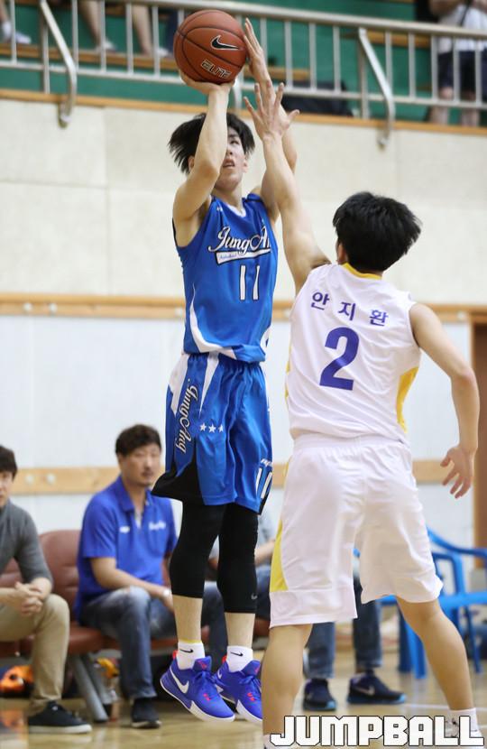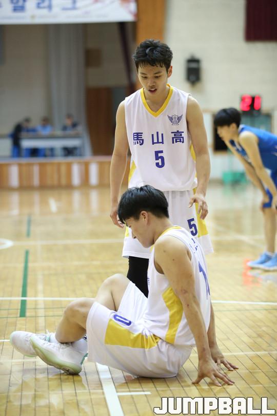 마산고가 9일 부산 동아고 체육관에서 열린 2018 한국중고농구연맹 주말리그 부산, 경남 권역 남고부 예선 경기에서 종료 직전 터진 정상우의 천금같은 결승득점에 힘입어 83-82로 극적인 역전승을 거뒀다.