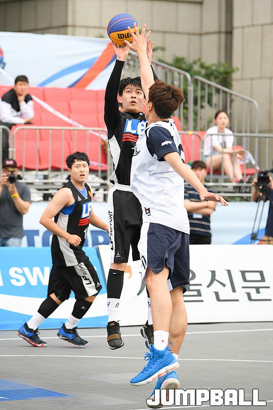 [점프볼=서울마당/유용우 기자] 10일 서울마당에서 열린 2018 KBA 3X3 코리아투어 최강전(FINAL) 2일차 오픈부 경기, 참가팀 선수가 팀KBL 윈즈를 상대로 공격을 펼치고 있다.