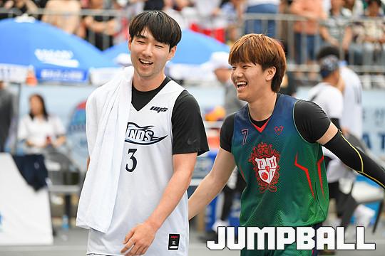 [점프볼=서울마당/유용우 기자] 10일 서울마당에서 열린 2018 KBA 3X3 코리아투어 최강전(FINAL) 2일차, 팀KBL 윈즈와 PHE의 경기에서 윈즈 양홍석이 2점슛을 성공시키며 경기를 승리하였다. 김낙현과 정지우가 경기를 마치고 환하게 웃고 있다.