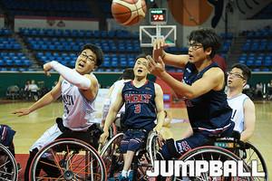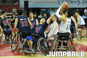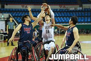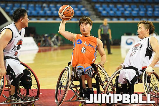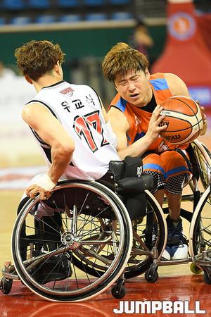 [점프볼=잠실/유용우 기자] 14일 서울 송파구 잠실학생체육관에서 열린 제17회 우정사업본부장배 전국휠체어농구대회 마지막날, 제주특별자치도와 수원무궁화전자의 남자1부 3-4위전 경기, 제주특별자치도 황우성이 패스를 시도하고 있다.