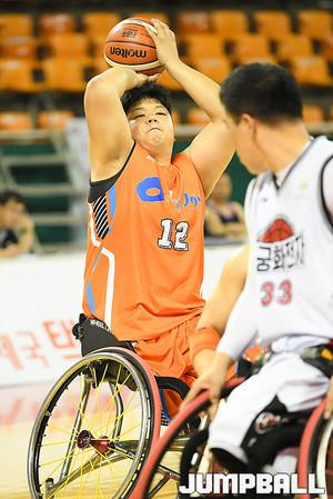 [점프볼=잠실/유용우 기자] 14일 서울 송파구 잠실학생체육관에서 열린 제17회 우정사업본부장배 전국휠체어농구대회 마지막날, 대전과 울산의 남자2부 결승전, 대전 임문택이 수비 돌파를 시도하고 있다.
