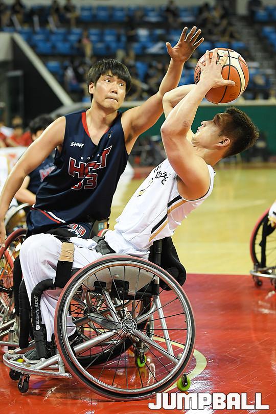 [점프볼=잠실/유용우 기자] 14일 서울 송파구 잠실학생체육관에서 열린 제17회 우정사업본부장배 전국휠체어농구대회 마지막날, 서울특별시청과 고양홀트의 남자1부 결승 경기, 서울특별시청 김태옥이 공격을 시도하고 있다.