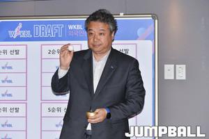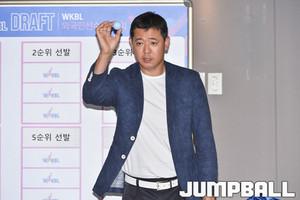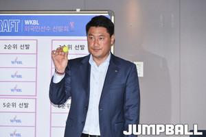 [점프볼=등촌/홍기웅 기자] 19일 WKBL 사옥에서 진행된 2018-2019 WKBL 외국인선수 선발회. KEB 하나은행 이환우 감독이 1순위로 샤이엔 파커를 선택하고 있다.