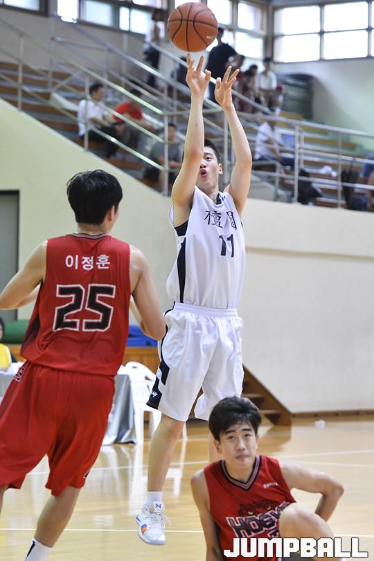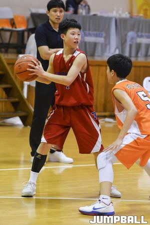 [점프볼=서울/홍기웅 기자] 30일 서울 양정고등학교 체육관에서 열린 '2018 한국중고농구 주말리그' 단대부중과 호계중의 경기. 단대부중 이윤성이 점프슛을 던지고 있다.