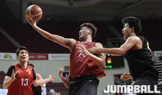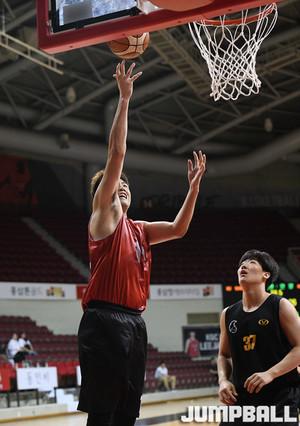 [점프볼=안양/문복주 기자] 4일 안양실내체육관에서 열린 안양 KGC인삼공사와 성균관대의 연습경기에서 KGC인삼공사 김승원이 골밑에서 파이팅 넘치는 공격력으로 리바운드를 잡아내고 있다.