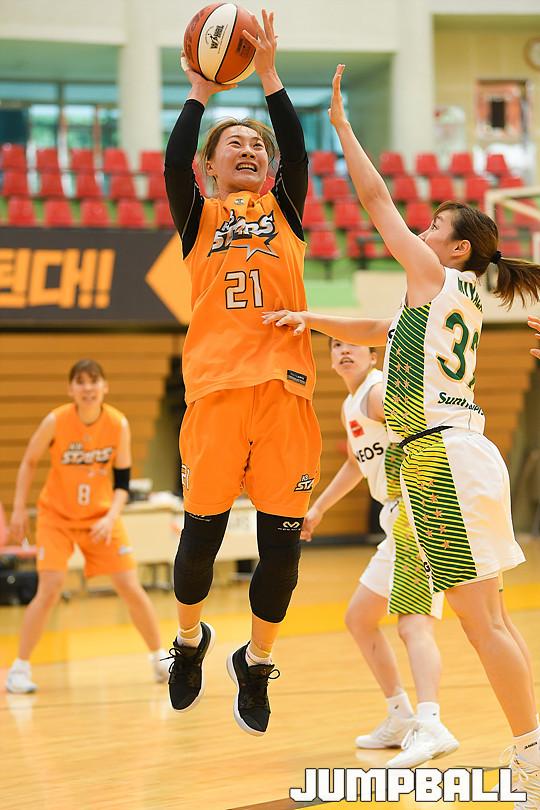 [점프볼=천안/유용우 기자] 04일 천안에 위치한 KB금융그룹 천안연수원내 체육관에서 열린 KB 스타즈와 일본 JX 에네오스와의 연습경기, KB 김진영이 JX 에네오스 골밑을 공략하고 있다.