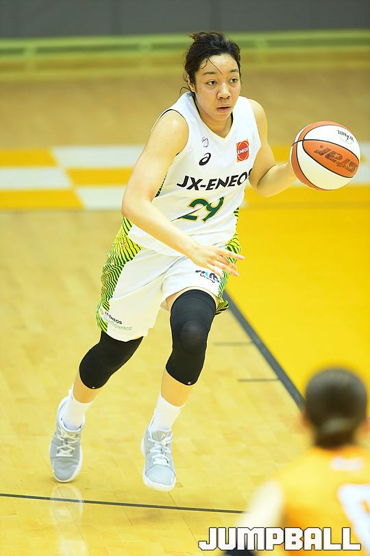 [점프볼=천안/유용우 기자] 04일 천안에 위치한 KB금융그룹 천안연수원내 체육관에서 열린 KB 스타즈와 일본 JX 에네오스와의 연습경기, JX 에네오스 유니카 나카무라가 공격을 전개하고 있다.