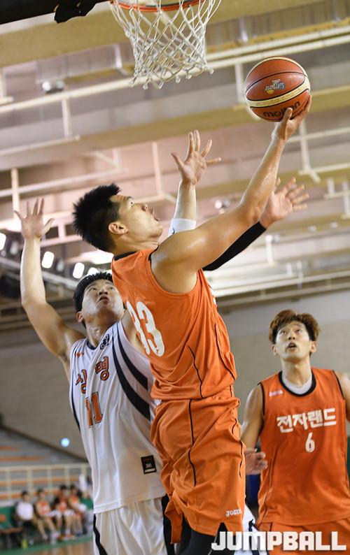 [점프볼=인천/문복주 기자] 5일 인천 삼산월드체육관에서 열린 인천 전자랜드와 상명대의 연습경기에서 전자랜드 최우연이 골밑 사이드로 파고들어 백슛을 시도하고 있다.