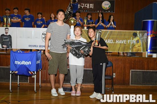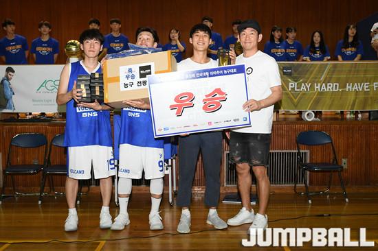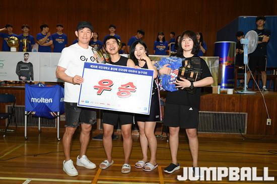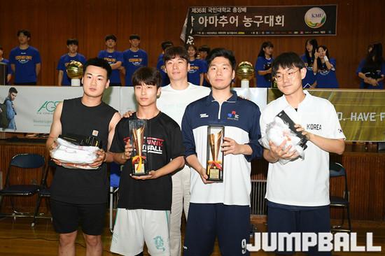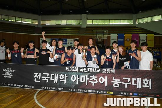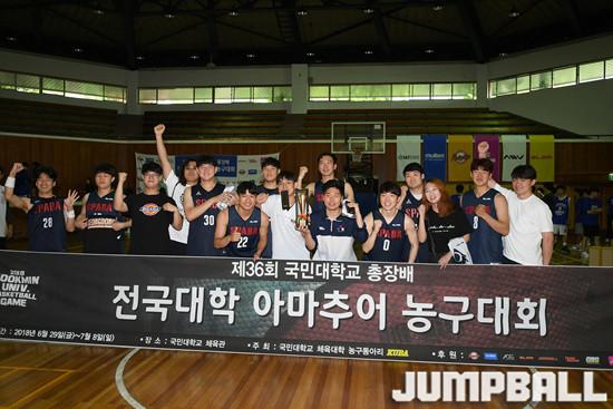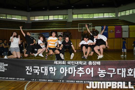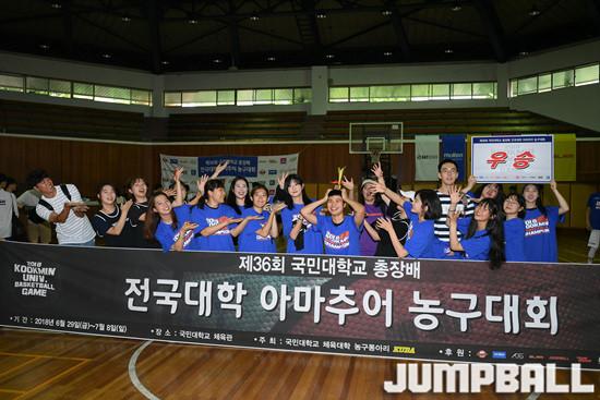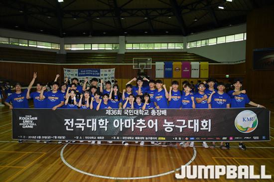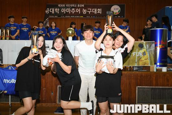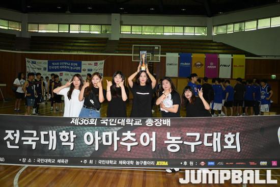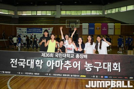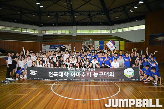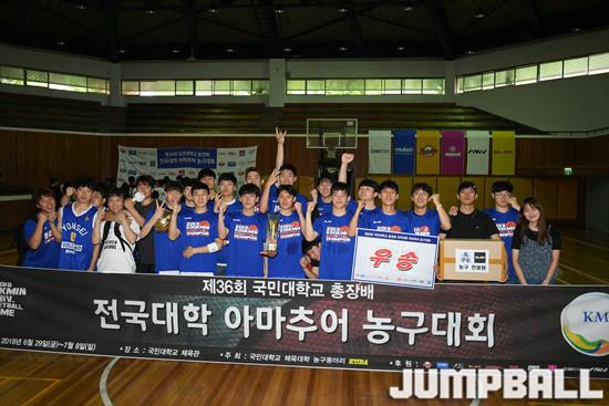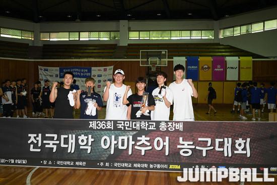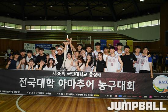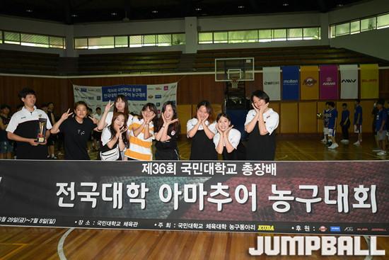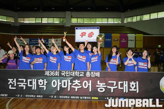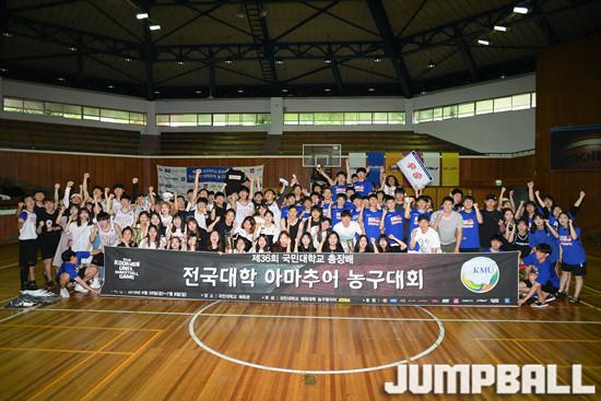 [점프볼=서울/문복주기자] 8일 국민대학교 체육관에서는 제36회 국민대학교 총장배 전국대학아마추어 농구대회 남대부, 여대부 결선 토너먼트가 펼쳐졌다. 이번 대회는 32개의 남대부, 8개의 여대부 총 40개 팀이 참가하여 지난달 29일부터 치열한 조별예선을 치러왔다. 그 결과 남대부는 연세대의 볼케이노, 여대부는 숙명여대의 DEKE가 불꽃 튀는 결승전 끝에 우승 트로피를 들어올렸다.
