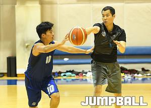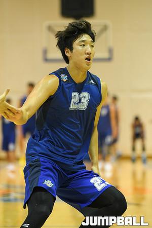 KCC 하승진이 버논 해밀턴 코치와 최승태 코치의 지도로 체력훈련과 수비 훈련을 실시하고 있다.