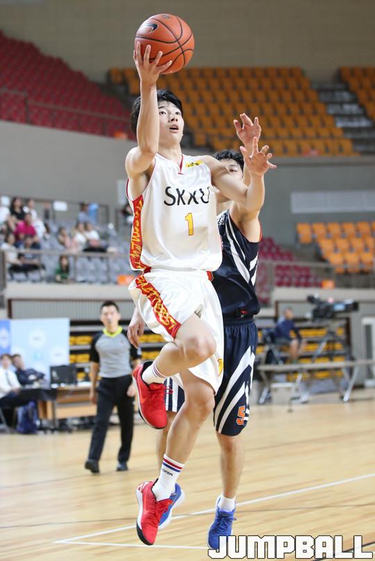 18일 경북 상주실내체육관에서 열린 제34회 MBC배 전국대학농구대회 6강전 첫 경기, 성균관대의 가드 양준우가 빠른 발을 이용해 레이업슛을 성공시키고 있다.