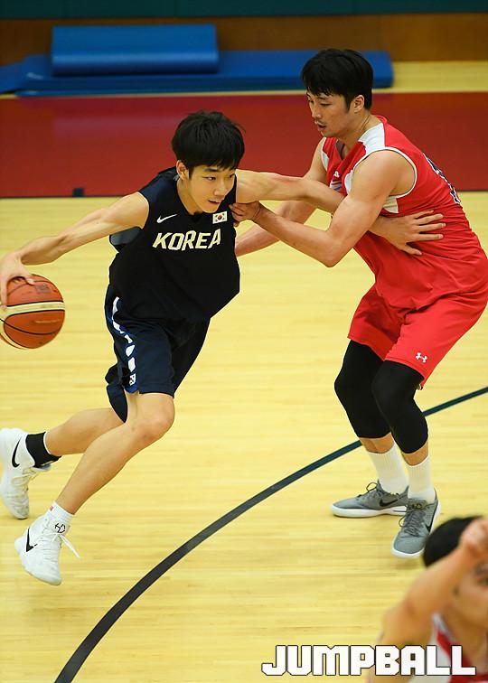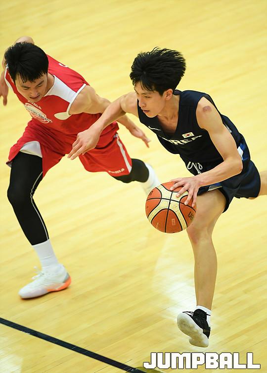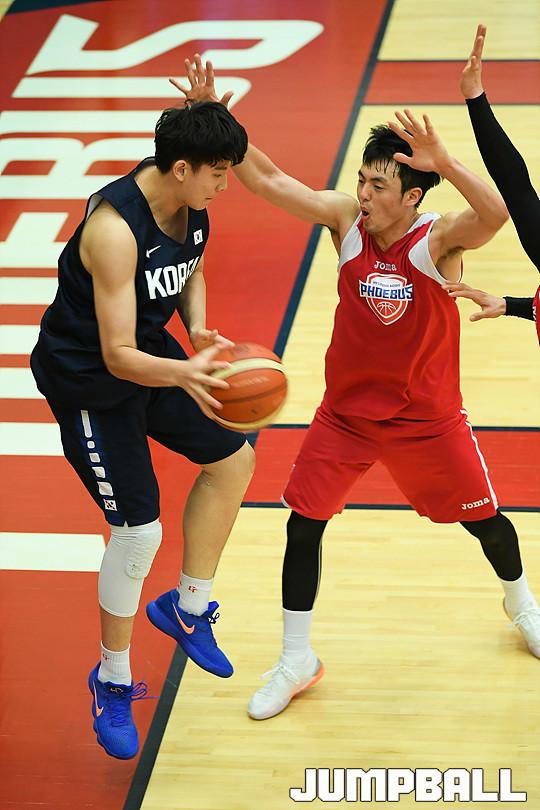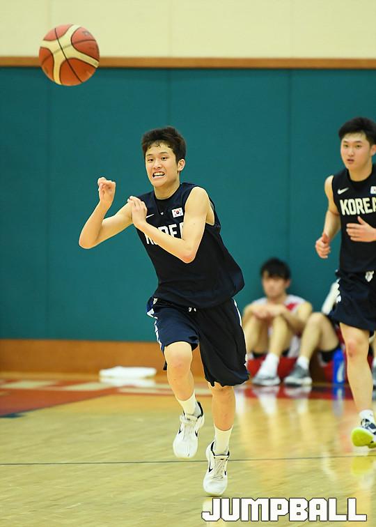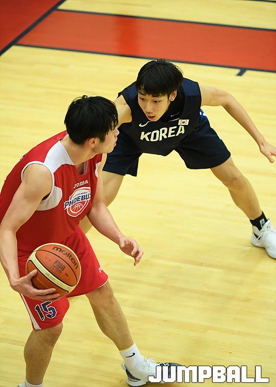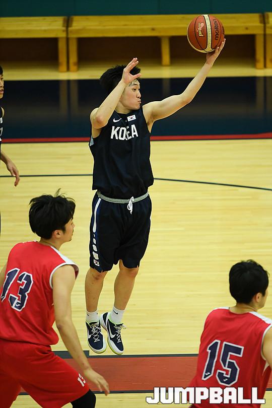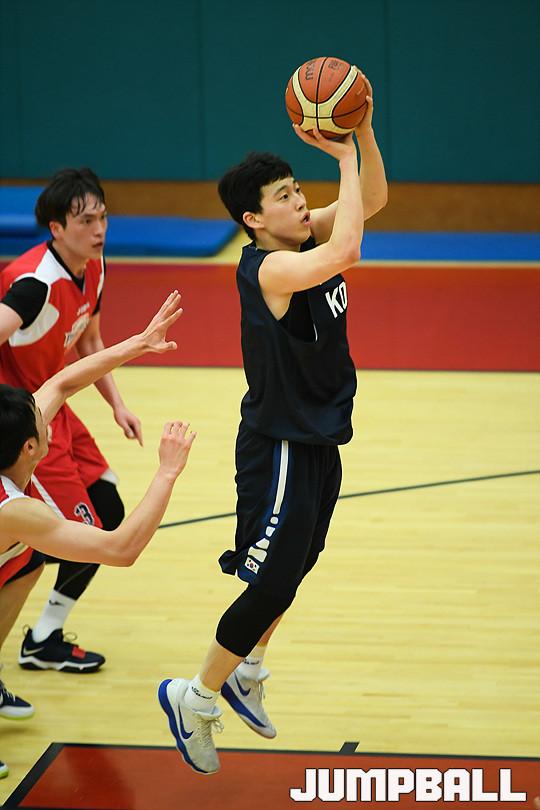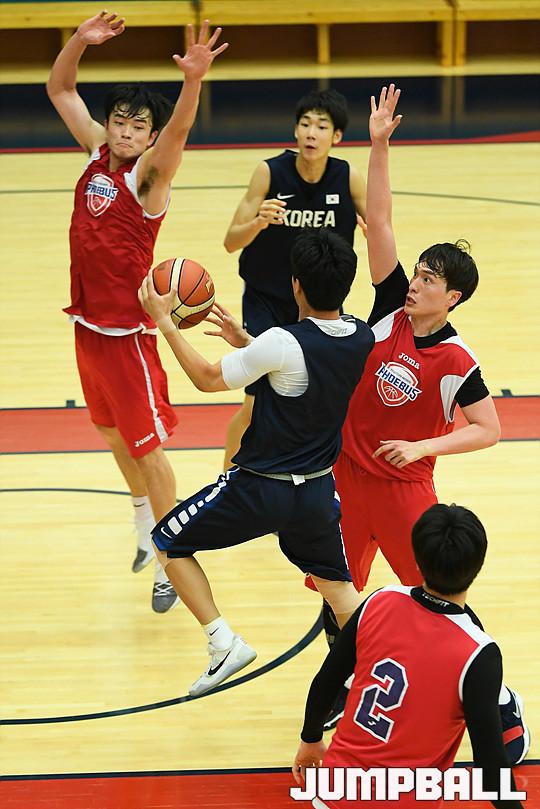 [점프볼=용인/유용우 기자] 19일 용인에 위치한 현대모비스 용인체육관에서 열린 현대모비스와 U18 남자농구대표팀의 연습경기 화보