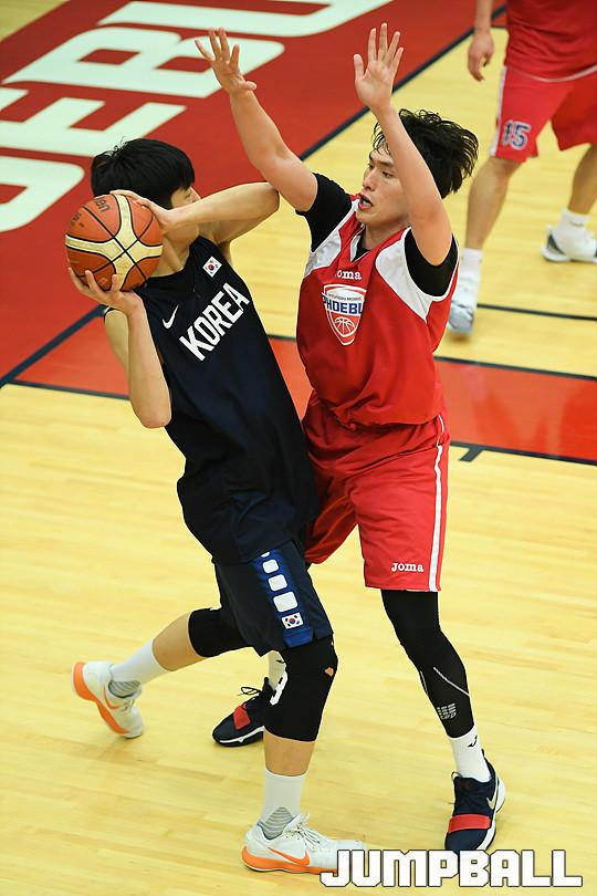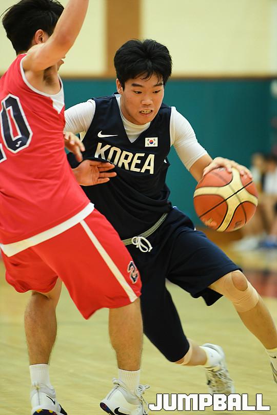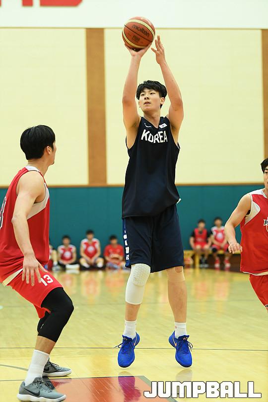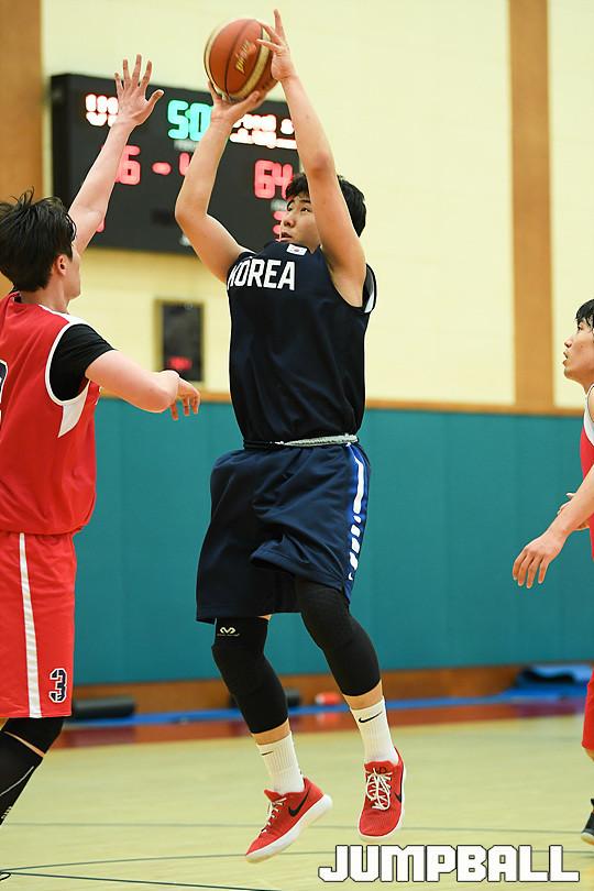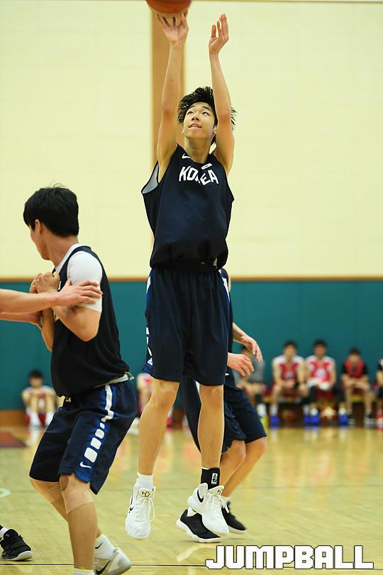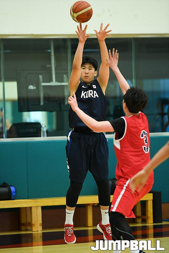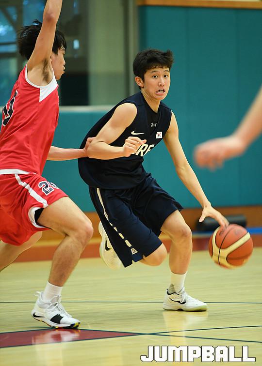[점프볼=용인/유용우 기자] 19일 용인에 위치한 현대모비스 용인체육관에서 열린 현대모비스와 U18 남자농구대표팀의 연습경기 화보