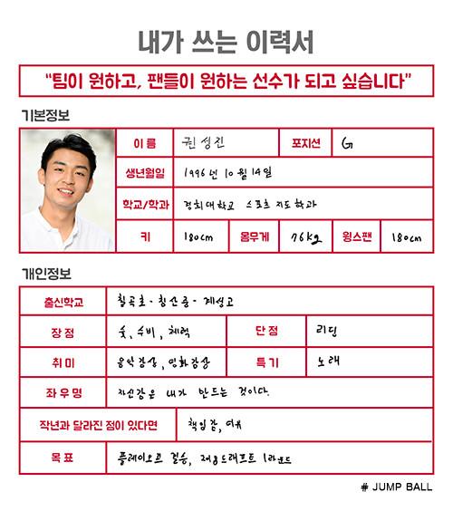 센터를 본 후 가드로 전향하면서 도움이 된 것이 있다면 리바운드 싸움에서의 위치선정. “(포지션을 바꾼 것에)장단점이 있는 것 같다”고 말한 권성진은 “가드도 포스트업을 할 줄 알아야 하는데, 골밑에서 패스를 빼주는 부분에 자신 있다”며 자신만의 강점을 어필했다.